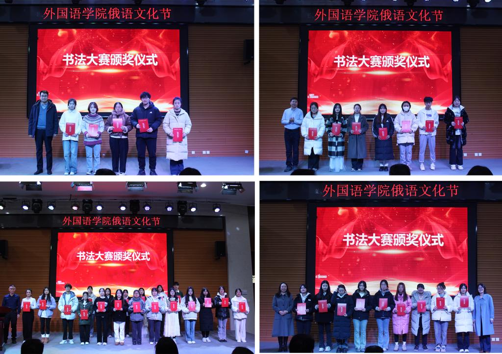 為進一步展示外語及其蘊含的深邃文化,引導學生體會外語的形美和意美,激發(fā)學習興趣,營造良好氛圍。為期一個月的俄語文化節(jié)設置了外語書法大賽、海報設計大賽等,并進行了隆重表彰,與會領導嘉賓為獲獎學生頒獎。