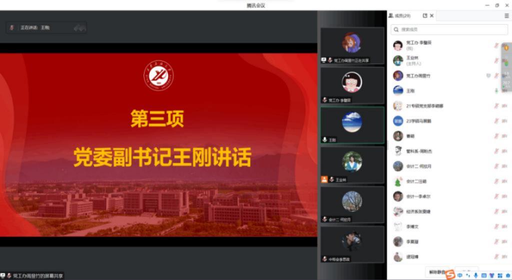學(xué)院黨委副書記王剛對(duì)2023年學(xué)院學(xué)生黨支部黨建工作成果表示肯定,對(duì)各學(xué)生黨支部書記的工作表示感謝,對(duì)支部傳承和辛勤付出進(jìn)行鼓勵(lì)。他表示,學(xué)生黨支部書記述職評(píng)議會(huì)是各支部間難得的溝通交流機(jī)會(huì),希望各黨支部書記高度重視自查和考核工作,相互交流工作經(jīng)驗(yàn),以本次述職評(píng)議為契機(jī),努力做到黨建引領(lǐng)把牢方向、統(tǒng)籌協(xié)調(diào)凝聚力量、攜手同行、齊頭并進(jìn),深入推進(jìn)學(xué)院學(xué)生黨建工作高質(zhì)量發(fā)展。