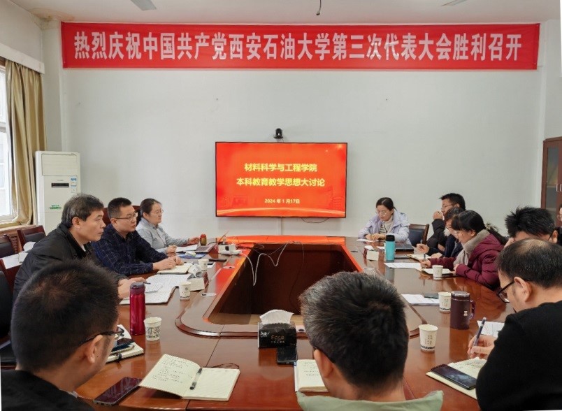 為持續(xù)深入開展學(xué)習(xí)貫徹習(xí)近平新時(shí)代中國特色社會(huì)主義思想,全面學(xué)習(xí)貫徹黨的二十大精神,進(jìn)一步落實(shí)中國共產(chǎn)黨西安石油大學(xué)第三次代表大會(huì)報(bào)告任務(wù)與目標(biāo),根據(jù)《西安石油大學(xué)關(guān)于開展本科教育教學(xué)思想大討論活動(dòng)的通知》,1月17日下午,材料科學(xué)與工程學(xué)院組織在第四實(shí)驗(yàn)樓312會(huì)議室召開本科教育教學(xué)思想大討論研討會(huì)。學(xué)院書記、副院長,各系、中心、辦公室主任,專業(yè)帶頭人,各系支部書記,學(xué)院教學(xué)督導(dǎo)等20多人參加,會(huì)議由學(xué)院黨委書記林紅先主持。