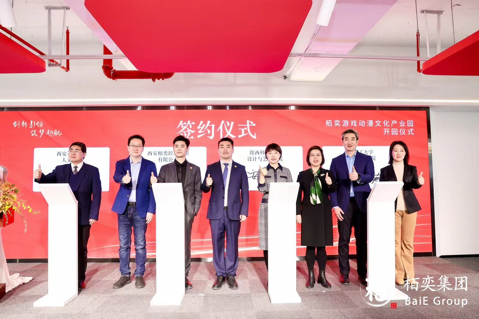 西安浐灞國際港黨群工作部、宣傳文旅局、城管局、投資商務(wù)局,以及各高校、協(xié)會、企業(yè)代表等160余人出席本次開園儀式。我校就業(yè)指導(dǎo)中心副主任樊曉旭、人文學(xué)院黨委書記余小勇、人文學(xué)院黨委副書記盛丹、人文學(xué)院教授肖雪峰等一行出席活動。在校企簽約儀式上,余小勇與栢奕集團董事長任占奎簽訂了校企合作協(xié)議,栢奕集團副總?cè)味Y煜向肖雪峰頒發(fā)了專家聘書。