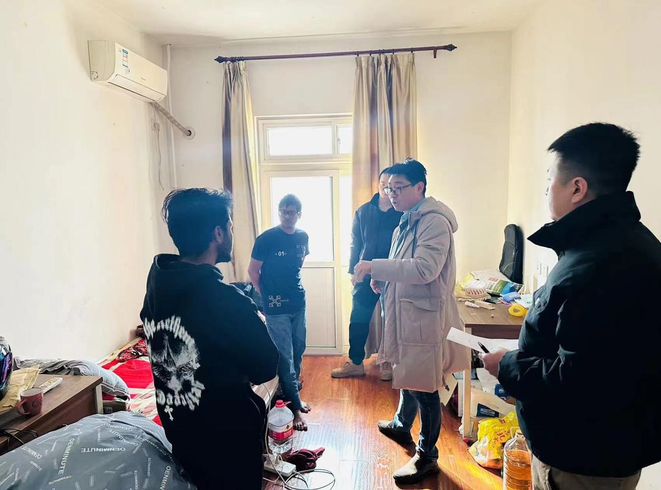 董皓在會上先后傳達(dá)了省委教育工委消防安全部署視頻會、學(xué)校校內(nèi)建筑消防安全隱患排查化解專項(xiàng)行動部署會、穩(wěn)定安全專題會等會議精神和要求。她要求全院要高度重視,引以為戒,切實(shí)做好國際學(xué)生消防安全工作,強(qiáng)化消防安全紅線意識,全面壓實(shí)穩(wěn)定安全責(zé)任。她強(qiáng)調(diào),一是細(xì)致排查公寓重點(diǎn)部位消防安全隱患,對排查出的消防隱患立即解決。二是進(jìn)一步排查公寓廚房電器使用情況,加強(qiáng)公寓用電安全警示教育,嚴(yán)禁違規(guī)使用大功率電器。三是排查公寓樓外充電樁消防器材配備,聯(lián)合保衛(wèi)部門做好無主車輛清理工作。四是聯(lián)系專業(yè)部門和人員檢查公寓電路電線,防范線路短路、電壓超負(fù)荷等情況發(fā)生。