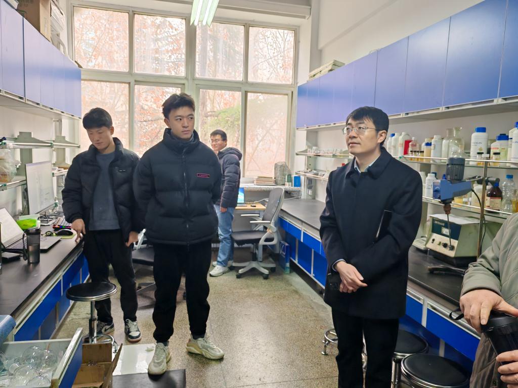 檢查過程中,高小明一行對學(xué)院每個科研實(shí)驗(yàn)室進(jìn)行了詳細(xì)檢查,并現(xiàn)場查看了安全臺賬記錄、?;吩噭┑氖褂玫怯?、壓力氣瓶的保管、易制毒試劑的保存,并和研究生同學(xué)進(jìn)行了交流和溝通。李善建詳細(xì)了解了目前各科研實(shí)驗(yàn)室運(yùn)行情況、實(shí)驗(yàn)臺分布和各位導(dǎo)師科研工作進(jìn)展情況。