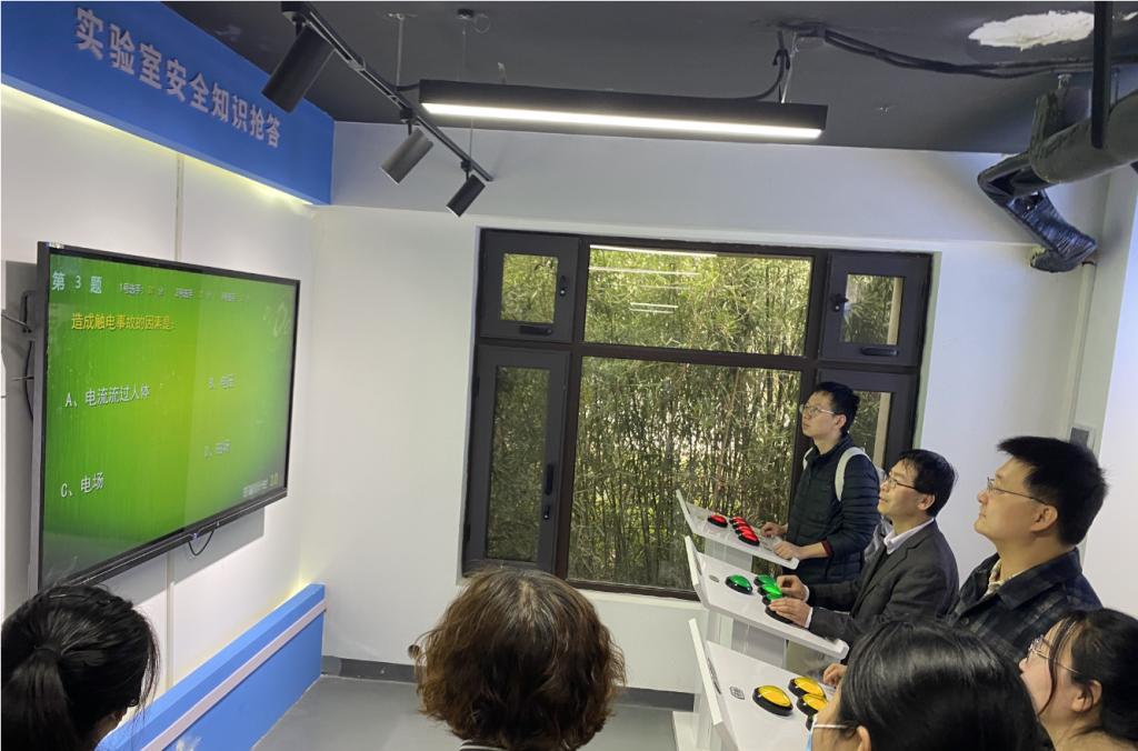 在講解員的帶領下,老師們在各區(qū)域進行了互動式、沉浸式體驗學習,通過安全知識學習、消防安全實景演練、事故場景感受、VR體驗、知識搶答等學習形式,對各類實驗室安全危害、隱患排查、安全自救等知識和技能進行了系統(tǒng)學習,身臨其境感受了實驗室安全事故的嚴重危害,全方位掌握了實驗室安全相關知識和技能。