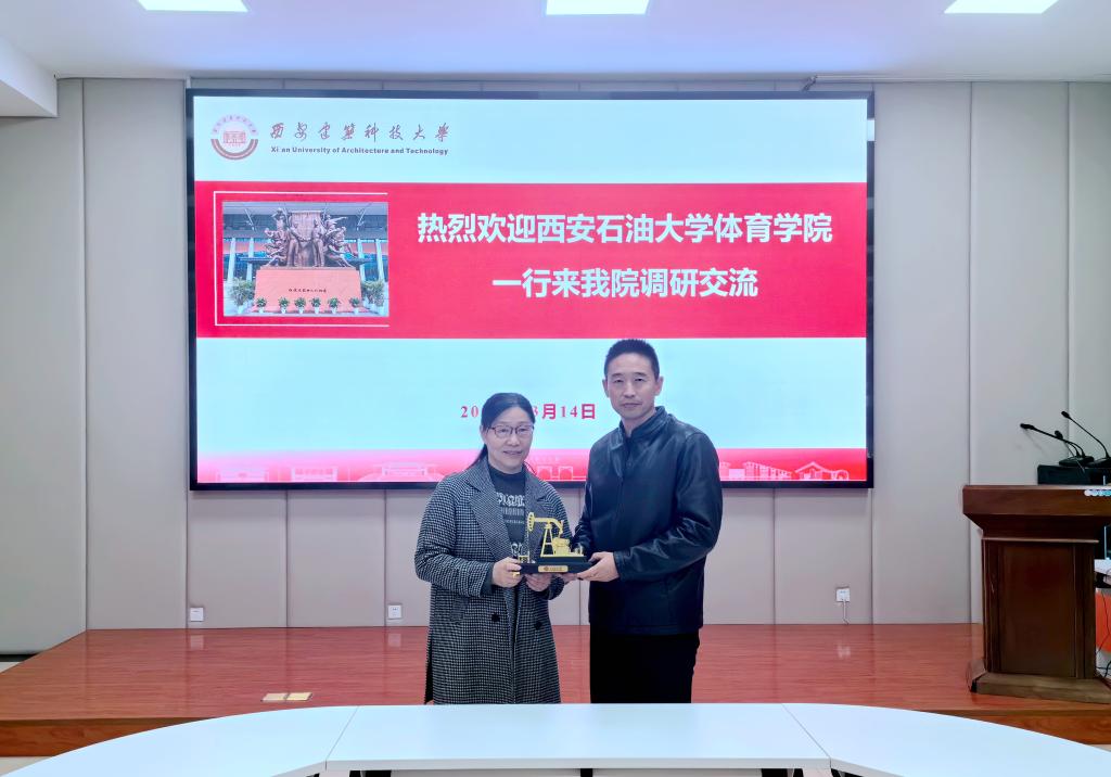 茍毅飛書記在發(fā)言中講到,非常感謝建大體院的熱情招待和傾囊相授,建大體院歷史悠久,底蘊(yùn)深厚,傳承有序,許多做法都非常有特色,也非常值得我們學(xué)習(xí)和借鑒,希望兩院以后繼續(xù)加強(qiáng)深度交流合作,互通有無、互相支持、共同進(jìn)步。誠摯邀請建大體院到西石大交流指導(dǎo)工作。最后李壽邦院長向由文華院長贈送了學(xué)校紀(jì)念品。