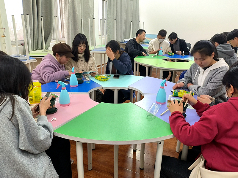 活動中,同學(xué)們?nèi)藶橐唤M,每組選擇自己想種植的花草進(jìn)行并交流討論。軟件工程2201班心理委員張圣月為大家講解了與大自然有關(guān)的心理健康知識,引導(dǎo)學(xué)生關(guān)注自己的內(nèi)心情感,傾聽心靈聲音?;顒舆€設(shè)置了創(chuàng)意花草手工制作環(huán)節(jié),讓同學(xué)們動手親自制作花束和盆景,在細(xì)致的操作中,感受一花一世界的意趣,提高人際交往和溝通協(xié)調(diào)能力,不斷提升心理健康水平。