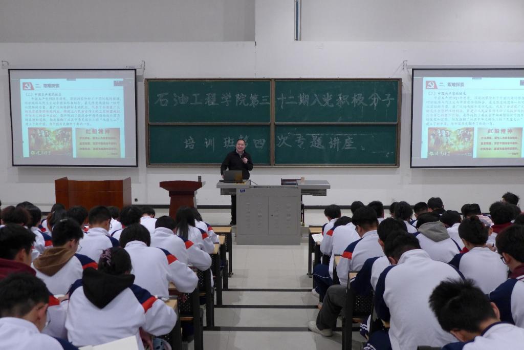 3月23日晚7點,石油工程學院第三十二期入黨積極分子培訓班第四次專題講座于開物樓115教室順利開展,本次講座線上線下同步進行。西安石油大學紀委副書記、紀委巡察辦黨支部書記齊仲鋒受邀擔任主講人。