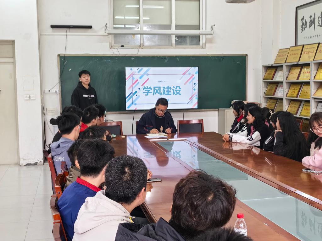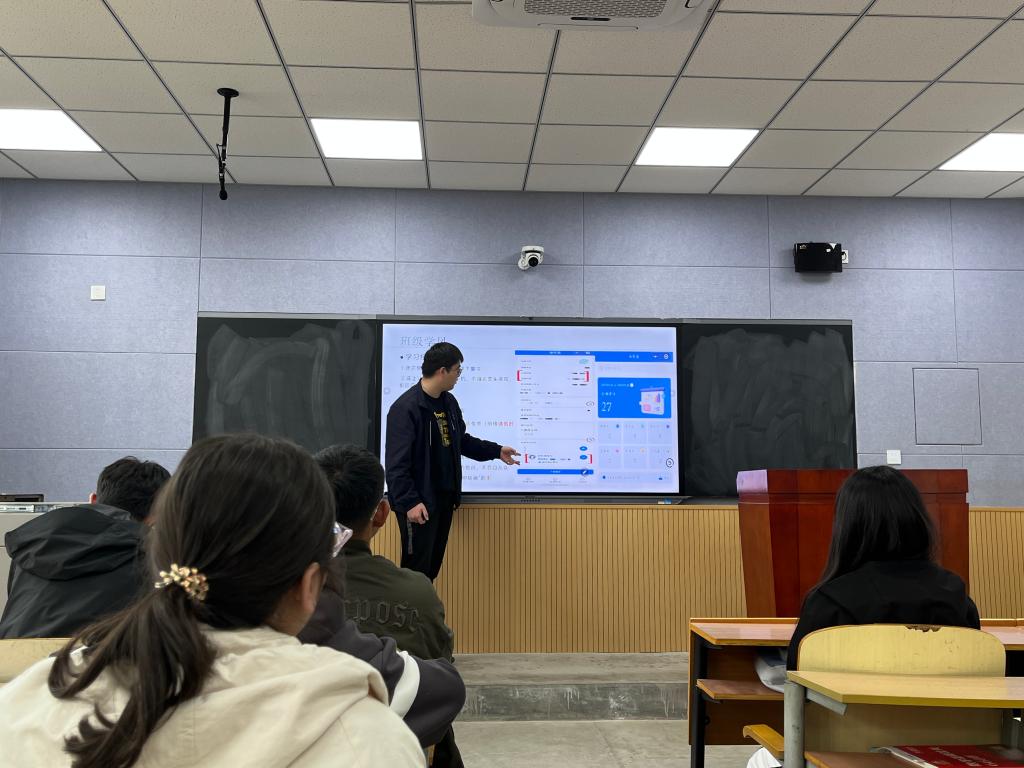 學(xué)院2023級輔導(dǎo)員李猛分別組織召開了2023級8個班次的主題班會。李老師結(jié)合各班級上學(xué)期期末考試成績進行情況分析。他總結(jié)了上學(xué)期同學(xué)們在大學(xué)生活中的表現(xiàn),鼓勵同學(xué)們在保證學(xué)業(yè)優(yōu)秀的同時積極參與課外活動,發(fā)掘自己的興趣愛好。同時,李老師針對“污點學(xué)分”較多的同學(xué)進行學(xué)業(yè)警示,通過家校聯(lián)合,朋輩互助,學(xué)科專項學(xué)習(xí)小組等方法,提高同學(xué)們學(xué)習(xí)積極性和自身學(xué)習(xí)能力。