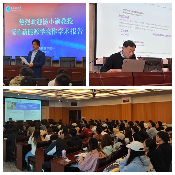 在全院上下深入貫徹落實我校第三次黨代會精神,全面推動一校一策工作之際,41日下午,新能源學(xué)院新程大講堂第5講在邑校區(qū)弘石報告廳舉行,中國科學(xué)院計算機網(wǎng)絡(luò)信息中心楊小渝教授應(yīng)邀作了題為“MatCloud材料智算云:國產(chǎn)新材料研發(fā)加速度’”的學(xué)術(shù)報告。本次報告由學(xué)院黨委書記宋海洋主持,學(xué)院師生代表共計100余人參加此次報告會。