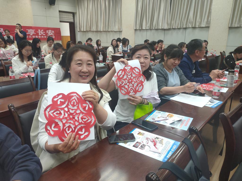 活動第三個(gè)環(huán)節(jié),由陜西省社區(qū)文化建設(shè)促進(jìn)會非遺文化專業(yè)委員會主任王艷同志,主講非遺剪紙藝術(shù)的歷史與傳承,并帶領(lǐng)大家親身體驗(yàn)剪紙的樂趣。