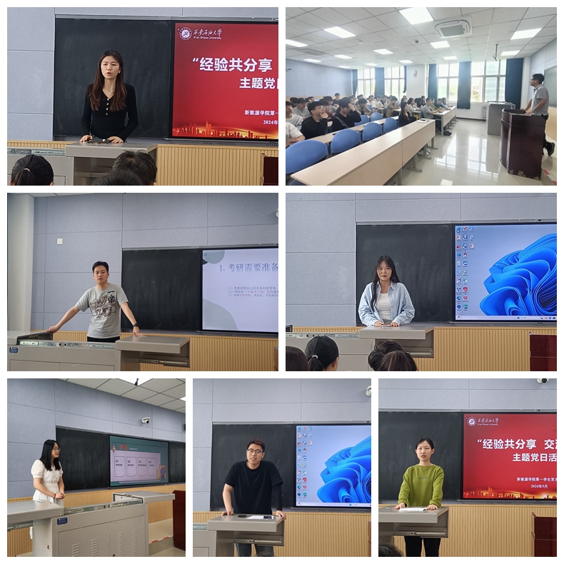 在第一學(xué)生黨支部的活動中,被西安交通大學(xué)擬錄取的劉菲為大家講述了她的考研時間規(guī)劃和各科的學(xué)習(xí)方法,提醒同學(xué)們不要和別人比進(jìn)度,學(xué)習(xí)時要有自己的節(jié)奏,準(zhǔn)確定位+信息檢索+自律努力+心態(tài)=成功上岸;被西北大學(xué)擬錄取的項玥文,就初試、復(fù)試和調(diào)劑三個部分給大家講了一路走來的心路歷程,對于如何準(zhǔn)備復(fù)試等策略性問題進(jìn)行答疑解惑,她鼓勵同學(xué)們要調(diào)整好心態(tài),只要能堅持下去就是勝利;被西安石油大學(xué)擬錄取的秦宇東,講述了備考技巧和考研的注意事項,他強調(diào)要把時間拉長,把空間放大,很多問題自會找到答案;已簽約到蕪湖楚睿智能科技有限公司的禹航和劉夢婷,給大家講了求職的心路歷程,簡歷的撰寫方法,能材專業(yè)的職位選擇,參加招聘的途徑和面試技巧,鼓勵想要就業(yè)的同學(xué)多參加實習(xí),勇于嘗試,給自己更多的機會。