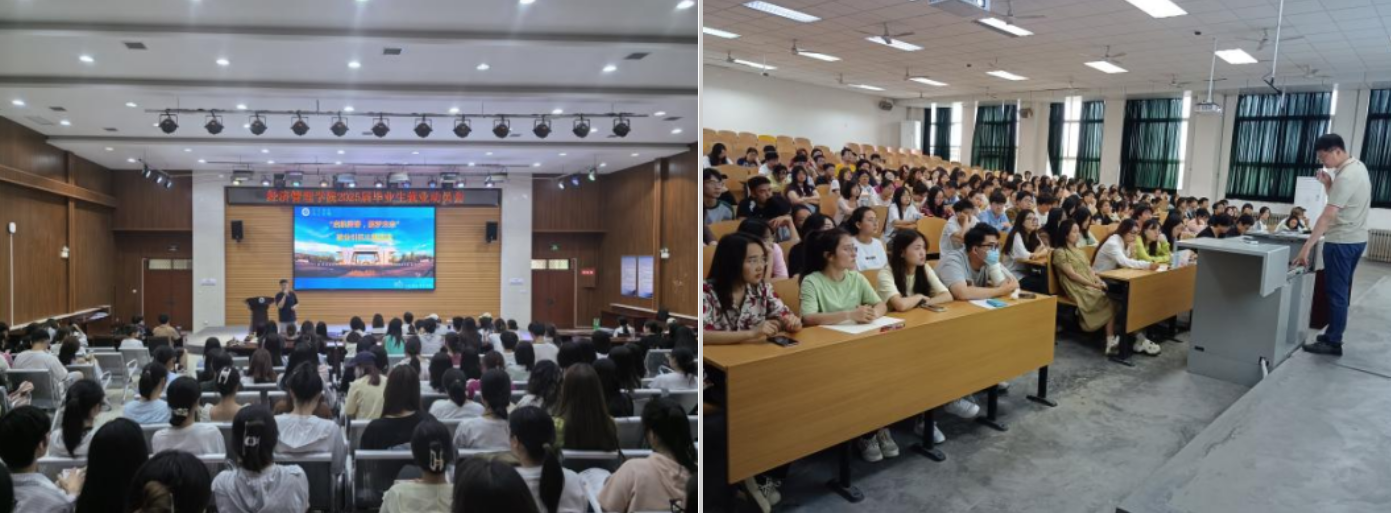 為提前謀劃、扎實做好2025屆畢業(yè)生就業(yè)指導與服務工作,幫助學生了解就業(yè)形勢,把握就業(yè)機會,端正就業(yè)觀念,做好就業(yè)與職業(yè)規(guī)劃,提高就業(yè)競爭力,近期,經(jīng)濟管理學院分專業(yè)召開了2025屆本科畢業(yè)生就業(yè)動員大會。經(jīng)濟管理學院學生工作辦公室主任李博文作動員指導,2025屆輔導員劉清、曹萌及2025屆全體本科畢業(yè)生參加了動員大會,