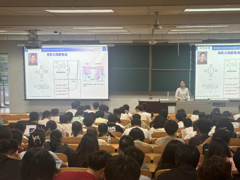 515日晚,學(xué)院新程大講堂第8講“光伏發(fā)電技術(shù)-有機(jī)太陽能電池”在鄠邑校區(qū)A139室開講。本次講座特邀學(xué)院新能源材料與器件系高歡歡擔(dān)任主講,學(xué)院2023級(jí)全體學(xué)生參加。講座中,高歡歡首先介紹了自己的學(xué)習(xí)和工作經(jīng)歷,接著向大一的同學(xué)們科普了當(dāng)前全球能源的嚴(yán)峻形勢,強(qiáng)調(diào)新型綠色能源的開發(fā)和利用的必要性和緊迫性,詳細(xì)解讀了“雙碳”戰(zhàn)略提出的背景和重大意義,并由此引入講座的主題“體相異質(zhì)結(jié)有機(jī)太陽電池”。通過對(duì)從“器件效率”-“大面積柔性?!?span lang="EN-US">-“低成本光伏器件”-“綠色溶劑”-“穩(wěn)定性/壽命”不同發(fā)展階段,以及工作原理的詳細(xì)講解,讓同學(xué)們對(duì)自己所在的學(xué)科背景和知識(shí)有了更深層次的認(rèn)識(shí)。最后,高歡歡向同學(xué)們介紹了體相異質(zhì)結(jié)有機(jī)太陽能電池的發(fā)展趨勢,以及光伏器件和活性層的制備過程和方法,并結(jié)合學(xué)院的課程設(shè)置,帶領(lǐng)同學(xué)們進(jìn)一步了解所學(xué)專業(yè)的培養(yǎng)方案和培養(yǎng)目標(biāo),鼓勵(lì)同學(xué)們不斷提高自身專業(yè)能力,在專業(yè)領(lǐng)域持續(xù)深耕,積極投身到我國的新能源行業(yè)建設(shè)當(dāng)中去。