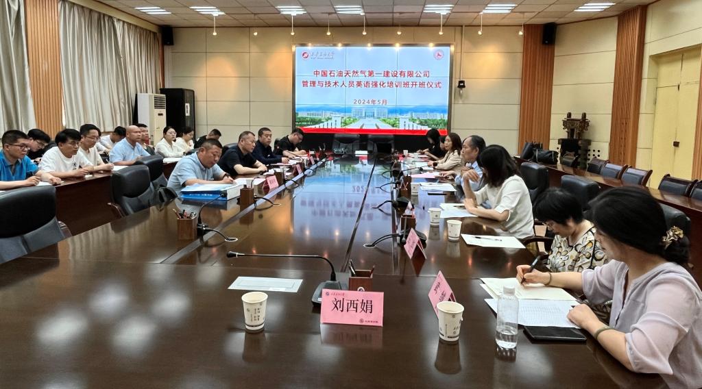 5月17日上午,外國語學(xué)院在雁塔校區(qū)會(huì)議中心第二會(huì)議室舉行了中國石油天然氣第一建設(shè)有限公司“國際合作工程技術(shù)與管理人員英語強(qiáng)化培訓(xùn)班”開班儀式。中國石油天然氣第一建設(shè)有限公司第五分公司經(jīng)理常曉鋒、總經(jīng)濟(jì)師汪洋、學(xué)院黨委書記田虹霞、副院長劉輝、MTI中心主任袁森、部分任課教師及全體培訓(xùn)學(xué)員參加。