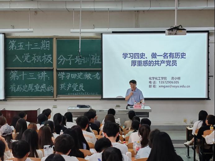 為加強(qiáng)黨史、國(guó)史、改革開放史、社會(huì)主義發(fā)展史教育,弘揚(yáng)以愛國(guó)主義為核心的民族精神和以改革創(chuàng)新為核心的時(shí)代精神,5月22日,經(jīng)濟(jì)管理學(xué)院第五十三期入黨積極分子培訓(xùn)班第十三講于鄠邑校區(qū)博覽樓239教室舉行。本次黨課由化學(xué)化工學(xué)院黨委書記高小明主講,第五十三期全體入黨積極分子參加。