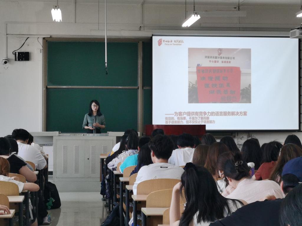 為營造良好的學術創(chuàng)新氛圍,促進知識傳播和學術交流,提升專業(yè)碩士研究生的科研能力與從業(yè)能力。5月23日下午,外國語學院特別邀請譯國譯民集團總經(jīng)理雷良瓊開展了“翻譯行業(yè)與翻譯職業(yè)”的專題講座。外國語學院翻譯碩士研究生及部分翻譯專業(yè)本科生共200余人聆聽了本次講座。