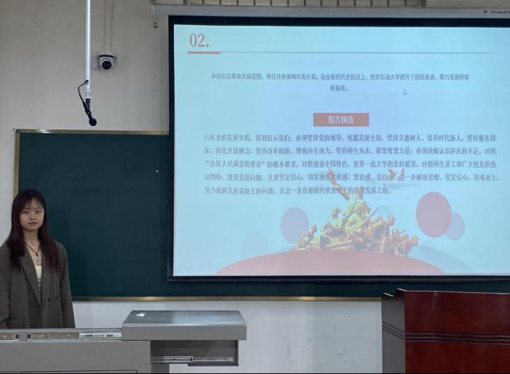 活動(dòng)開展期間,各班級(jí)團(tuán)支書紛紛走上講臺(tái),圍繞黨的創(chuàng)新理論最新成果、黨的青年運(yùn)動(dòng)史、新時(shí)代黨和國(guó)家事業(yè)取得的歷史性成就及發(fā)生的歷史性變革、紅色基因傳承等內(nèi)容,用青年學(xué)生易于接受的語(yǔ)言和形式開展主題宣講。各位團(tuán)干部從個(gè)人學(xué)習(xí)體會(huì)出發(fā),結(jié)合具體案例和自身經(jīng)歷,將理論知識(shí)與實(shí)踐故事相結(jié)合,講述了五四精神、黨的二十大精神等對(duì)于青年一代的深遠(yuǎn)影響,以及青年學(xué)生應(yīng)如何在新時(shí)代中肩負(fù)起歷史使命,為實(shí)現(xiàn)中華民族偉大復(fù)興的中國(guó)夢(mèng)貢獻(xiàn)力量。