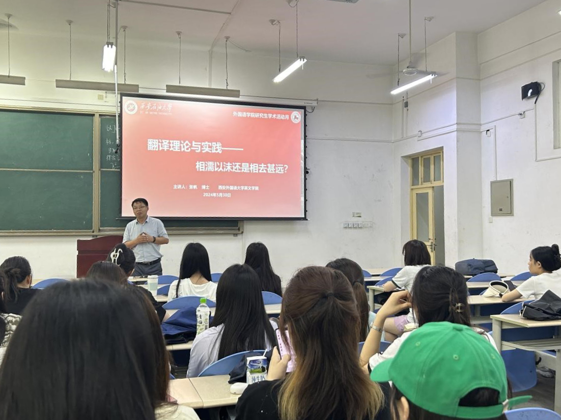 5月30日下午,外國(guó)語(yǔ)學(xué)院在鄠邑校區(qū)博思樓106教室舉行了研究生學(xué)術(shù)活動(dòng)月活動(dòng),本期邀請(qǐng)了西安外國(guó)語(yǔ)大學(xué)青年教師張帆博士擔(dān)任主講,活動(dòng)由學(xué)院黨委副書(shū)記王業(yè)青主持,2023級(jí)全體研究生參加。