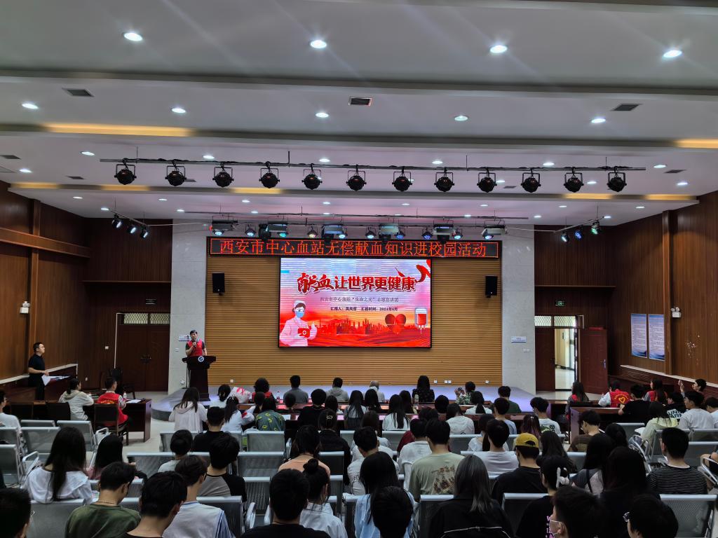 為加強(qiáng)對(duì)獻(xiàn)血知識(shí)的普及,讓更多的同學(xué)了解獻(xiàn)血的意義,積極參與無(wú)償獻(xiàn)血公益事業(yè),6月5日上午,學(xué)生工作部(處)聯(lián)合西安市中心血站在鄠邑校區(qū)崇文樓118報(bào)告廳舉辦“珍愛(ài)健康 關(guān)愛(ài)生命”主題科普教育講座。本次講座由西安市中心血站吳鳳哲主講,我校300余名學(xué)生參加。
