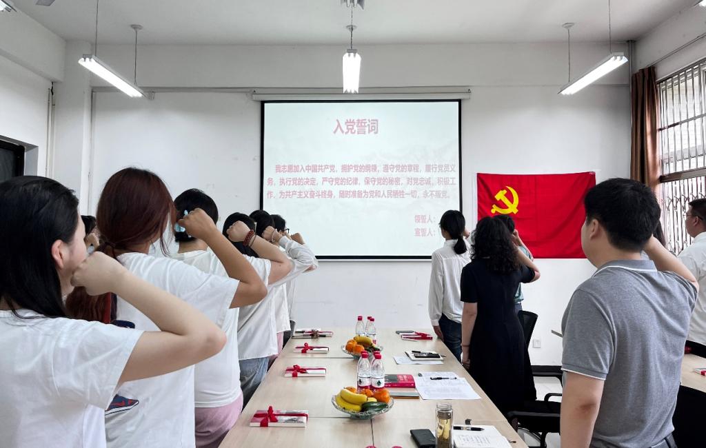 王業(yè)青帶領(lǐng)全體黨員面向黨旗,重溫入黨誓詞。希望同學(xué)們:一是率先垂范,發(fā)揮關(guān)鍵少數(shù)的作用,共同營造文明和諧有序畢業(yè)離校氛圍;二是堅持奮斗,發(fā)揮共產(chǎn)黨員先鋒模范作用,努力實現(xiàn)自己的人生價值;三是心懷感恩,厚植知校愛校榮校情懷,畢業(yè)后持續(xù)關(guān)心支持學(xué)院的發(fā)展。