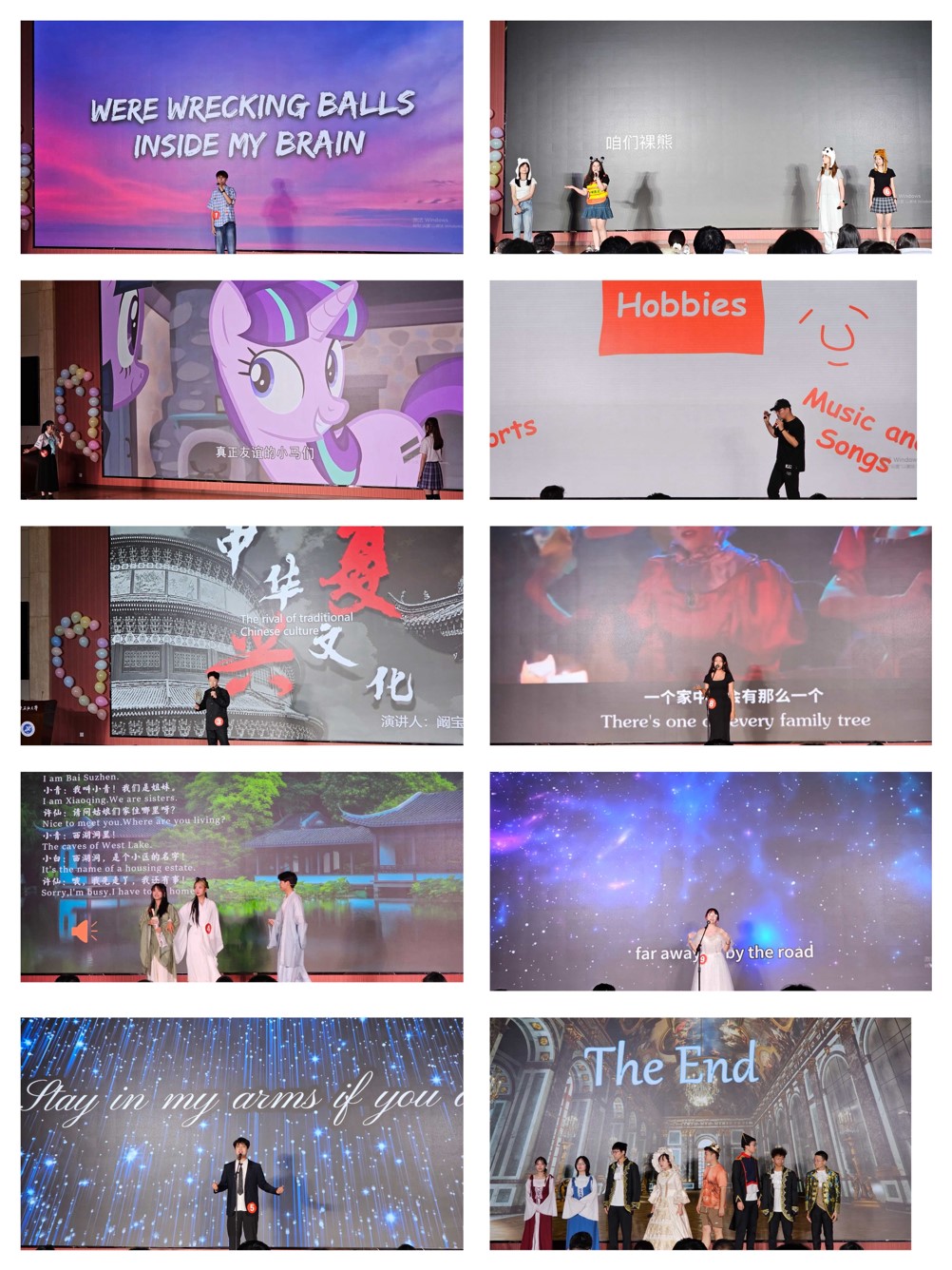 本次大賽經(jīng)過預(yù)賽、復(fù)賽歷時(shí)一個(gè)月,最終有十支參賽隊(duì)伍進(jìn)入決賽。決賽中,參賽選手通過歌曲、話劇、演講、配音等形式,為觀眾帶來了一場(chǎng)視聽盛宴。經(jīng)過先后兩輪的激烈角逐,最終大賽評(píng)委根據(jù)參賽選手兩回合的現(xiàn)場(chǎng)表現(xiàn),評(píng)選出了本次賽事的獲獎(jiǎng)選手。新能源學(xué)院選手史沐涵配音《Tough Love》榮獲一等獎(jiǎng),電子工程學(xué)院選手孫浩琰等7位同學(xué)話劇《皇帝的新裝》、電子工程學(xué)院選手馬駿中演講《Appreciate Music and Enjoy it》榮獲二等獎(jiǎng),經(jīng)濟(jì)管理學(xué)院選手艾海提演唱《I Have Nothing》、外國(guó)語學(xué)院選手黃賀等三位同學(xué)配音《咱們裸熊》、理學(xué)院選手白慕寧等兩位同學(xué)配音《小馬寶莉》榮獲三等獎(jiǎng),其余四組選手榮獲優(yōu)秀獎(jiǎng)。