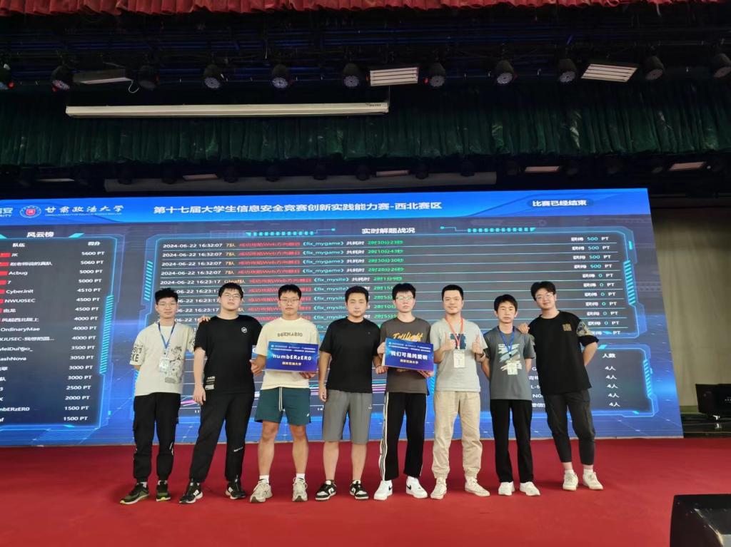 622日,全國大學(xué)生信息安全競賽—創(chuàng)新實踐能力賽(西北賽區(qū))線下賽在甘肅政法大學(xué)圓滿落幕,本次大賽由教育部高教司、工業(yè)和信息化部信息安全協(xié)調(diào)司指導(dǎo),信息安全類專業(yè)教學(xué)指導(dǎo)委員會、中國互聯(lián)網(wǎng)發(fā)展基金會主辦,甘肅政法大學(xué)承辦,該項賽事屬國家B級賽事。計算機學(xué)院孔劼老師帶領(lǐng)2021級、2022級學(xué)生組隊參加了本次比賽。