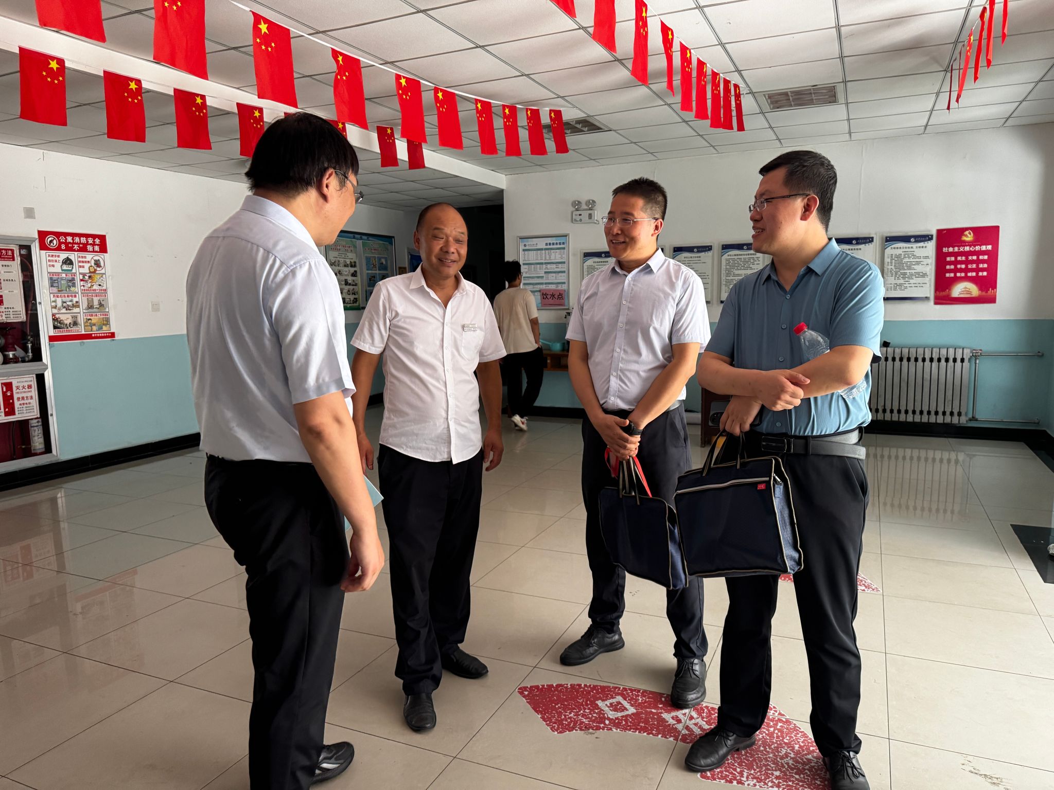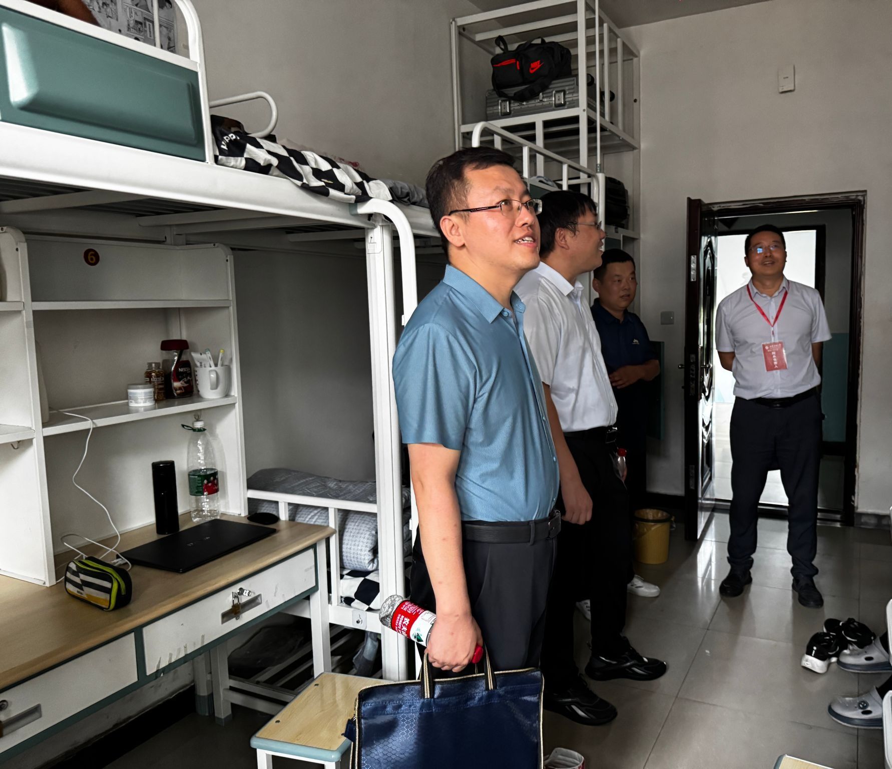 走訪過程中,席利哲一行對新同學的到來表示熱烈歡迎,針對迎新工作、宿舍環(huán)境、生活習慣、服務保障、未來學習和規(guī)劃等與學生展開了深入交流,并對學生提出的困惑和問題給予了關心和解答,鼓勵新同學要樹立遠大理想,珍惜大學時光,勤奮學習,勇于探索未知領域,全面提升自己的綜合素質和能力水平。各位老師還提醒新生要注意用電安全、防火防盜等事項,并鼓勵大家相互尊重、相互關心、相互包容、相互幫助,共同營造一個和諧、溫暖、安全、舒適的宿舍環(huán)境。最后,還與宿管工作人員就加強管理、優(yōu)化服務、積極回應學生的關切和訴求等方面進行了深入的溝通交流。