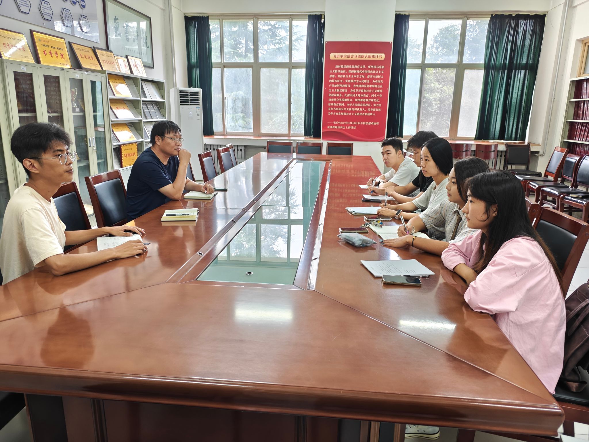 為了統(tǒng)一思想、明確目標(biāo)、強(qiáng)化責(zé)任擔(dān)當(dāng),確保新學(xué)期團(tuán)學(xué)工作的順利開展,9月4日,理學(xué)院團(tuán)委在鄠邑校區(qū)志遠(yuǎn)樓111室召開新學(xué)期第一次團(tuán)委學(xué)生會干部會議。學(xué)院黨委副書記楊富民、團(tuán)委書記龐波、學(xué)生會指導(dǎo)老師李猛、學(xué)院團(tuán)委學(xué)生會主席團(tuán)成員參加了會議,會議由龐波主持。