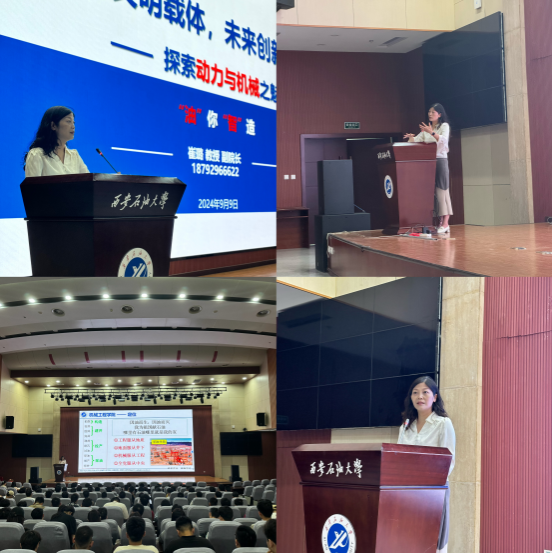 在報(bào)告中,崔璐教授以“依托石油、立足陜西、面向西北”的學(xué)校歷史沿革和“因油而生,因油而興”的學(xué)院發(fā)展定位為切入點(diǎn),詳細(xì)介紹了機(jī)械工程學(xué)院的專(zhuān)業(yè)設(shè)置和五大科研方向。她以生動(dòng)形象的語(yǔ)言,為學(xué)生們描繪了學(xué)科內(nèi)容和研究方向,使學(xué)生們對(duì)學(xué)院的科研領(lǐng)域有了更加清晰的了解。