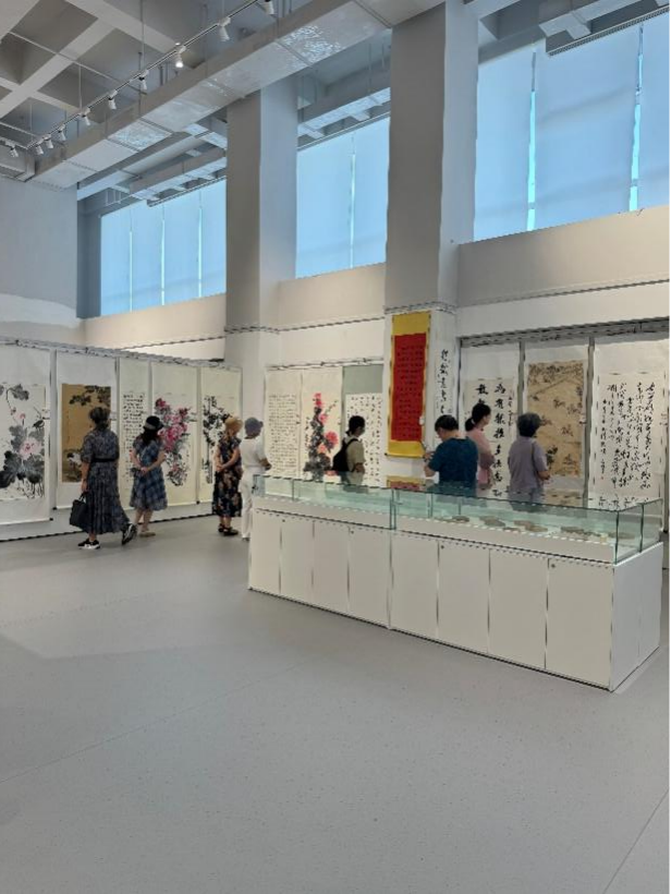 本次作品展共展出近百余幅作品,有我校參展作品15幅?;顒诱宫F(xiàn)了作者良好的綜合素質(zhì)和對傳統(tǒng)文化的追求,表達了他們對祖國對家鄉(xiāng)的無限熱愛和老有所學(xué)、老有所為、老有所樂的生活態(tài)度,我校離退休教職工也為我校參展作品能夠參展感到自豪和驕傲。書畫作品都栩栩如生、惟妙惟肖,展廳彌漫著墨香氣息,吸引著觀眾駐足欣賞、品鑒交流、拍照留念。