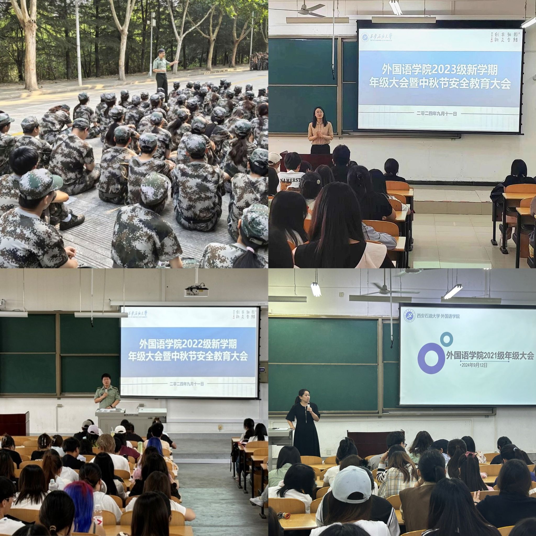 為貫徹落實學(xué)校各項工作要求,做好新學(xué)期各項學(xué)生教育管理服務(wù)工作,提高學(xué)生安全意識。近期,外國語學(xué)院各年級在鄠邑校區(qū)A234、B121、B112等分別召開新學(xué)期年級大會。