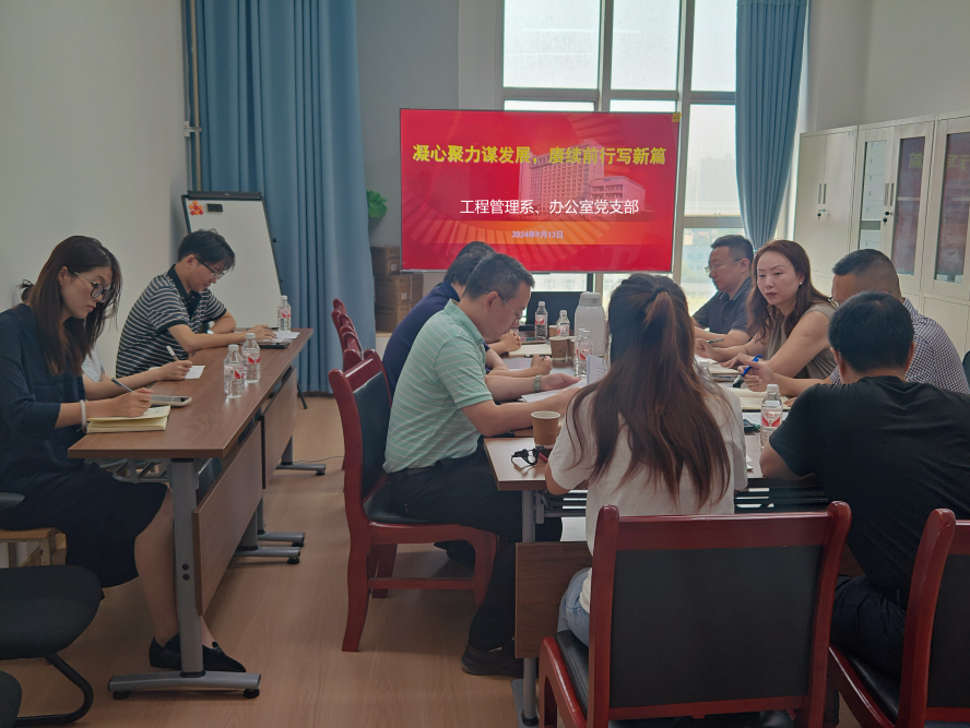9月13日上午,土木工程學院工程管理系、辦公室教工黨支部在雁塔校區(qū)東方石油樓1105召開了“凝心聚力謀發(fā)展,賡續(xù)前行譜新篇”為主題的支部大會,專題研討學科建設。學院黨委書記賈莉娜以普通黨員的身份參會,黨支部全體黨員參加會議。會議由黨支部書記牛波主持。