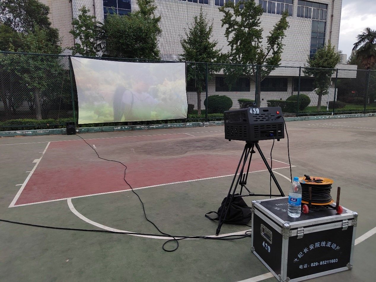 秋高氣爽,云淡風(fēng)輕,為響應(yīng)西安市雁塔區(qū)文化和旅游體育局關(guān)于開展“文化惠民系列之公益電影進(jìn)社區(qū)”活動(dòng)號(hào)召,豐富我校師生、居民業(yè)余文化生活,后勤處于9月19日在雁塔校區(qū)學(xué)生食堂西側(cè)球場(chǎng)舉辦公益電影放映活動(dòng),100余名師生居民到現(xiàn)場(chǎng)觀影。