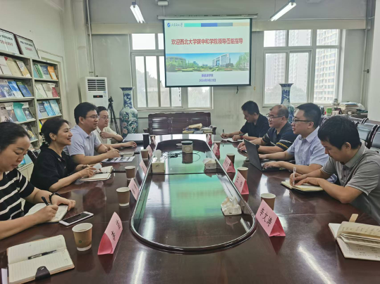 會上,廖敏對陳京京一行的到來表示熱烈歡迎,希望雙方以此次交流為契機,充分發(fā)揮各自優(yōu)勢,進一步深化合作內(nèi)容、拓展合作領域。宋海洋向與會人員詳細介紹了學院的成立背景、學科專業(yè)設置及人才培養(yǎng)“雙循環(huán)”、青年教師“強師工程”等方面的創(chuàng)新思路和舉措。他表示,雙方的合作有很多空間和切入點,希望雙方能夠在人才聯(lián)合培養(yǎng)、資源共享、教材共建、科研協(xié)同攻關、學術沙龍聯(lián)辦等方面開展實質(zhì)性合作,最終雙方實現(xiàn)共贏。