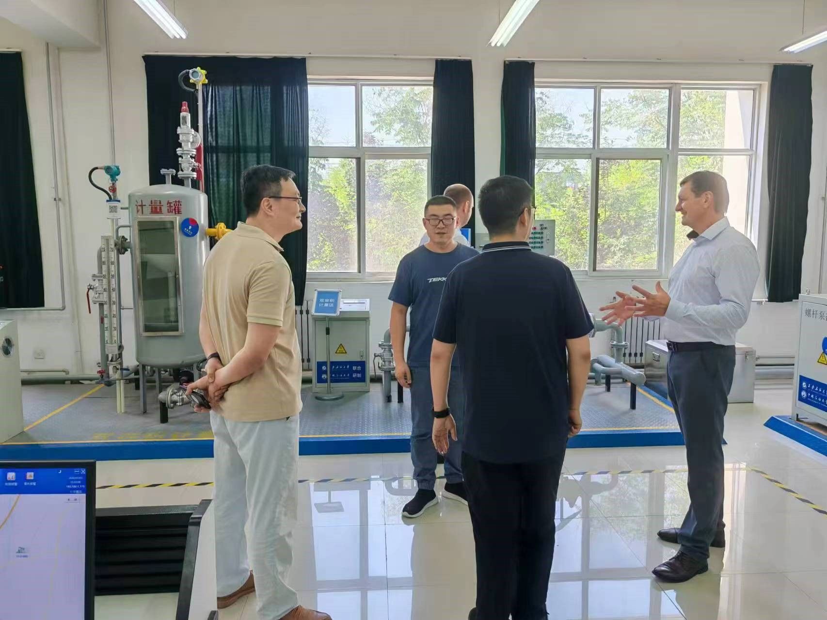 3.完成白俄羅斯石油學(xué)科設(shè)計(jì)研究院院長一行及鐵一中國際學(xué)校教師代表參觀接待工作。白俄羅斯國家石油公司石油科學(xué)研究設(shè)計(jì)院院長亞歷山大·齊布蘭科夫、地質(zhì)開發(fā)部副主任阿列克謝·庫德拉舒一行2人8月13日蒞臨我校鄠邑校區(qū)石油石化虛擬仿真實(shí)驗(yàn)教學(xué)中心參觀指導(dǎo)。