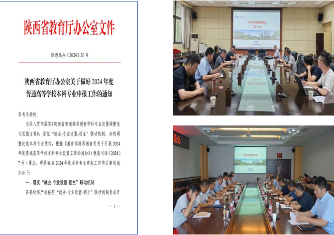 1.積極開展專業(yè)設(shè)置優(yōu)化調(diào)整工作。根據(jù)教育部《關(guān)于開展2024年度專業(yè)設(shè)置工作的通知》(教高司函〔2024〕7號)及《陜西省教育廳辦公室關(guān)于做好2024年度普通高等學(xué)校本科專業(yè)申報(bào)工作的通知》(陜教教高辦〔2024〕26號)文件,教務(wù)處積極學(xué)習(xí)領(lǐng)會文件精神,經(jīng)充分研討和調(diào)研,下發(fā)了《關(guān)于做好2024年本科專業(yè)設(shè)置及啟動2025版專業(yè)人才培養(yǎng)方案修訂工作的通知》,并提供了西安石油大學(xué)本科專業(yè)招生率、就業(yè)落實(shí)率情況統(tǒng)計(jì)表(2020-2023年)、2021-2023年高校專業(yè)情況統(tǒng)計(jì)表、專業(yè)設(shè)置優(yōu)化調(diào)整參考意見等資料,積極促進(jìn)各院(系)開展設(shè)置調(diào)整計(jì)劃。8月4日、8月29日,學(xué)校2次召開了本科專業(yè)調(diào)整專題研討會,張君濤副校長對本科專業(yè)調(diào)整優(yōu)化作了全面部署;9月2日,學(xué)校召開院系專業(yè)調(diào)整務(wù)虛會并進(jìn)一步研討確定了本年度專業(yè)調(diào)整方案。