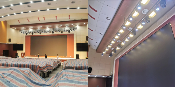 6.弘石報(bào)告廳燈光改造。為提升弘石報(bào)告廳的照明效果,滿足會議、演講、演出等活動需求,后勤處對燈光進(jìn)行了改造。根據(jù)不同場景設(shè)計(jì)了燈光布局,確保照明清晰、均勻、無陰影。采用柔和光線和合理色溫,避免眩光,提升視覺舒適度,并選用節(jié)能燈具,降低能耗。