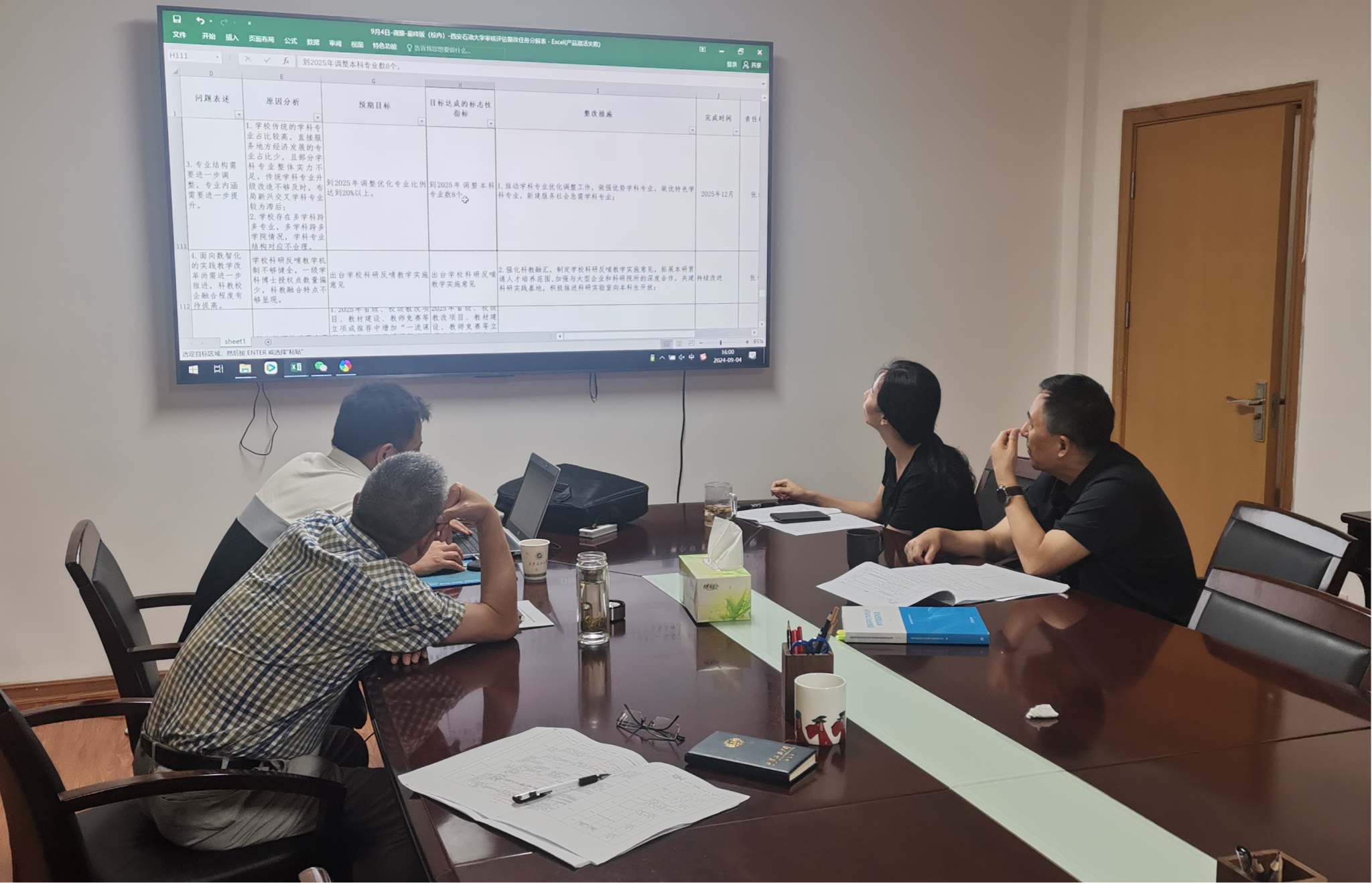 2024年4月29日至5月31日,我校進行了本科教育教學(xué)審核評估專家組線上評估及入??疾煸u估。專家組在審核評估報告中充分肯定學(xué)校本科教育教學(xué)的同時,指出本科教育教學(xué)工作中存在的問題。審核評估線上及入??疾煸u估只是審核評估的上半段,最重要的是整改工作,整改工作的好壞對學(xué)校全面深化教育教學(xué)綜合改革,健全質(zhì)量保障體系,提高學(xué)校人才培養(yǎng)質(zhì)量,引導(dǎo)學(xué)校特色發(fā)展、內(nèi)涵發(fā)展具有重要意義。7月24至9月1日,組織各主辦單位對整改任務(wù)落實清單進行了9次修改和意見征求;起草《西安石油大學(xué)本科教育教學(xué)審核評估整改方案》《西安石油大學(xué)本科教育教學(xué)審核評估整改工作實施方案》,于7月23日至9月1日,組織各單位進行了6次意見征求和修改工作。9月4日,將整改方案及任務(wù)落實清單提請校長辦公會審議。9月9日,將如期向省教育廳及中國西部高等教育評估中心提交學(xué)校整改方案。