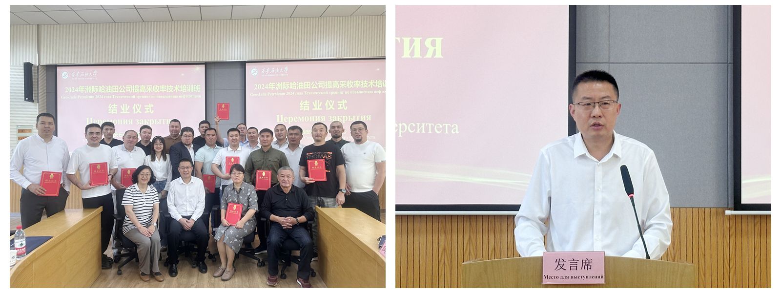 9月18日至24日,“洲際油氣公司提高采收率技術(shù)培訓(xùn)班”在我校順利舉辦,來自洲際油氣公司駐哈薩克斯坦兩個(gè)項(xiàng)目部的近30名油田現(xiàn)場(chǎng)一線技術(shù)骨干參加培訓(xùn)。