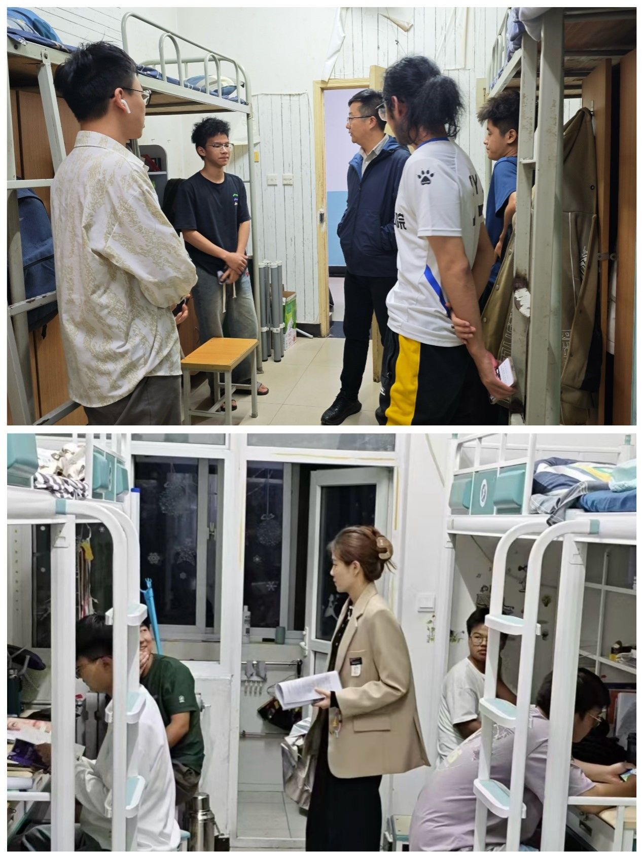 ——深入宿舍走訪。29日晚,學院黨委副書記劉煒航和各年級輔導員深入學生宿舍,與學生進行親切交談,詳細了解學生假期去向以及日常學習生活的實際困難,并就假期宿舍安全、人身安全、財產(chǎn)安全、交通安全、網(wǎng)絡(luò)安全等方面提出了具體要求,叮囑同學們嚴格遵守學校公寓管理相關(guān)規(guī)定,提高安全防范意識,樹立良好的生活習慣,共同營造安全、舒適和諧的住宿環(huán)境。