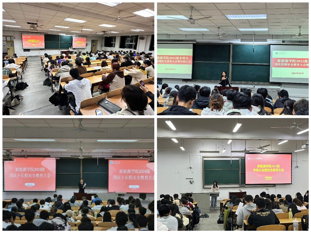 ——全面安全教育。29日,各年級相繼組織召開年級/班級安全教育大會。輔導員和班主任重點圍繞消防安全、交通安全、校園安全、網(wǎng)絡(luò)安全、人身安全和心理安全等方面對學生進行安全教育,結(jié)合校園案例和實用安全知識,引導學生增強自我保護意識,避免潛在危險。輔導員還組織全體學生簽署了《新能源學院國慶假期安全承諾書》和《新能源學院國慶假期去向登記表》,全面掌握假期學生動向。