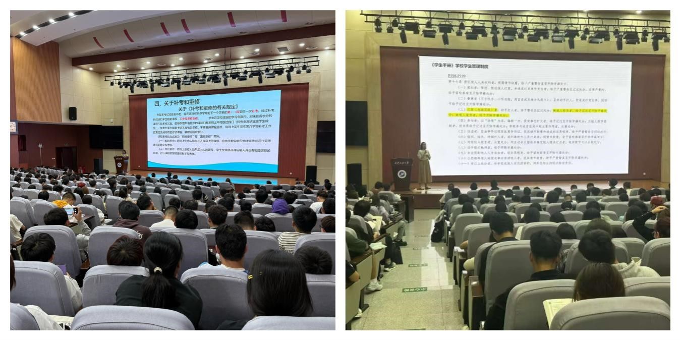 為幫助2024級(jí)學(xué)生學(xué)習(xí)理解學(xué)生管理相關(guān)制度,教育引導(dǎo)學(xué)生們養(yǎng)成良好的學(xué)習(xí)生活習(xí)慣,10月9日下午,電子工程學(xué)院在鄠邑校區(qū)弘石報(bào)告廳召開“強(qiáng)化學(xué)籍管理、明確校規(guī)校紀(jì)”教育會(huì)。學(xué)院黨委副書記芮執(zhí)根、教學(xué)辦公室主任張漪、2024級(jí)輔導(dǎo)員沈軒羽、帕麗達(dá)·托乎提及2024級(jí)全體學(xué)生參加會(huì)議。