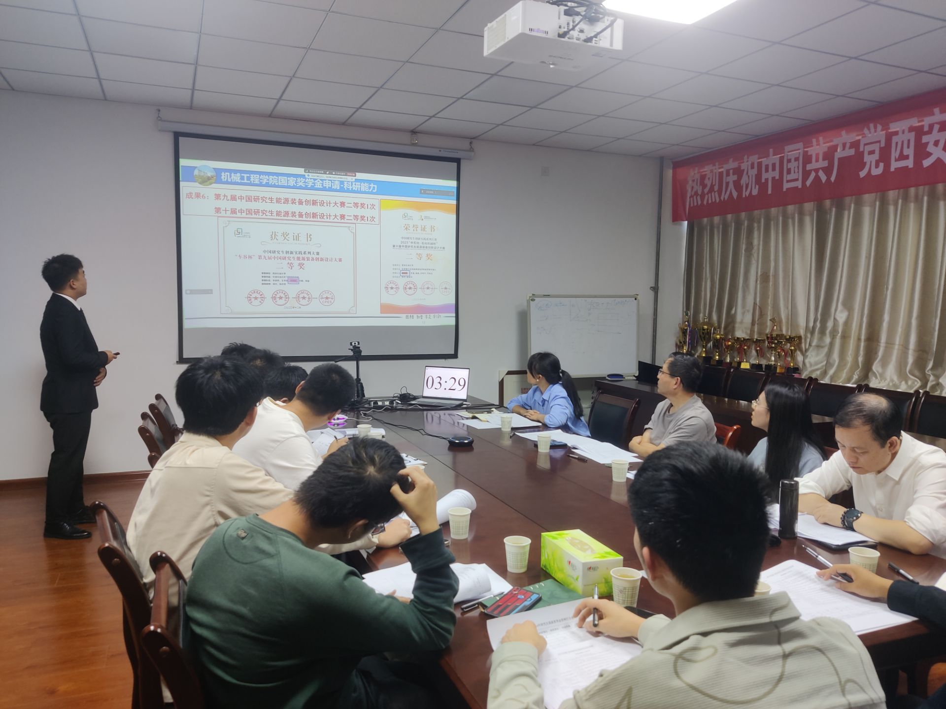為進(jìn)一步促進(jìn)學(xué)風(fēng)建設(shè),充分發(fā)揮國家獎學(xué)金的引領(lǐng)作用。10月10日下午,機(jī)械工程學(xué)院在雁塔校區(qū)第四實驗樓443會議室組織2024年研究生國家獎學(xué)金答辯會,機(jī)械工程學(xué)院黨委書記蔡建文,學(xué)院黨委紀(jì)檢委員劉冰、研究生導(dǎo)師代表魏航信、袁淑霞、研究生輔導(dǎo)員王璟和歐紅娟以及各年級各專業(yè)研究生代表參加會議,會議由黨委書記蔡建文主持,并通過線上會議的形式向全院研究生公開直播整個答辯過程。