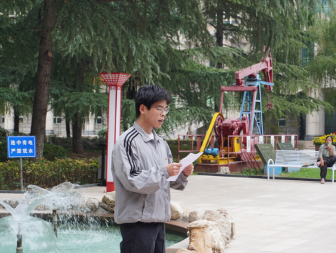 在鐵人王進(jìn)喜雕像前,學(xué)院研究生黨員代表郭文豪帶領(lǐng)全體師生重溫鐵人事跡,從一個(gè)放牛娃到鉆井隊(duì)長(zhǎng),最后帶領(lǐng)工人創(chuàng)造了一個(gè)又一個(gè)奇跡。王進(jìn)喜將自己的命運(yùn)與國(guó)家、民族的命運(yùn)緊緊的聯(lián)系在一起,勇敢負(fù)擔(dān)起國(guó)家和民族的重任。郭文豪號(hào)召同學(xué)們以鐵人精神為指引,在工作和學(xué)習(xí)中弘揚(yáng)鐵人堅(jiān)韌不拔的拼搏精神、發(fā)揚(yáng)鐵人無私忘我的奉獻(xiàn)精神、學(xué)習(xí)鐵人不斷引領(lǐng)創(chuàng)新進(jìn)取的精神,賡續(xù)鐵人血脈,守護(hù)精神密碼。以堅(jiān)毅的意志、團(tuán)結(jié)的力量和勇往直前的勇氣,書寫屬于西石大人的精彩華章