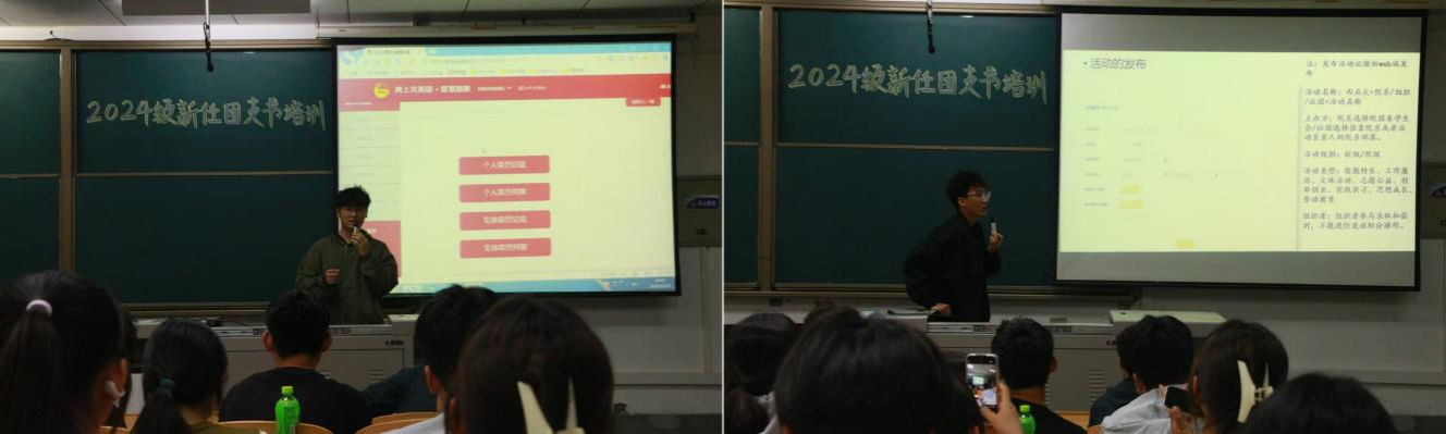 為進(jìn)一步加強(qiáng)基層團(tuán)組織建設(shè),提升2024級本科新任團(tuán)支部書記工作能力,1015日晚,校團(tuán)委于邑校區(qū)博覽樓A134教室舉辦2024級本科新任團(tuán)支部書記培訓(xùn)。本次培訓(xùn)由校團(tuán)委副書記孫浩哲,校團(tuán)委組織部負(fù)責(zé)人吳俊杰同學(xué)、第二課堂運(yùn)營中心負(fù)責(zé)人袁藝軍同學(xué)主講,全校2024級本科班級團(tuán)支部書記參加培訓(xùn)。