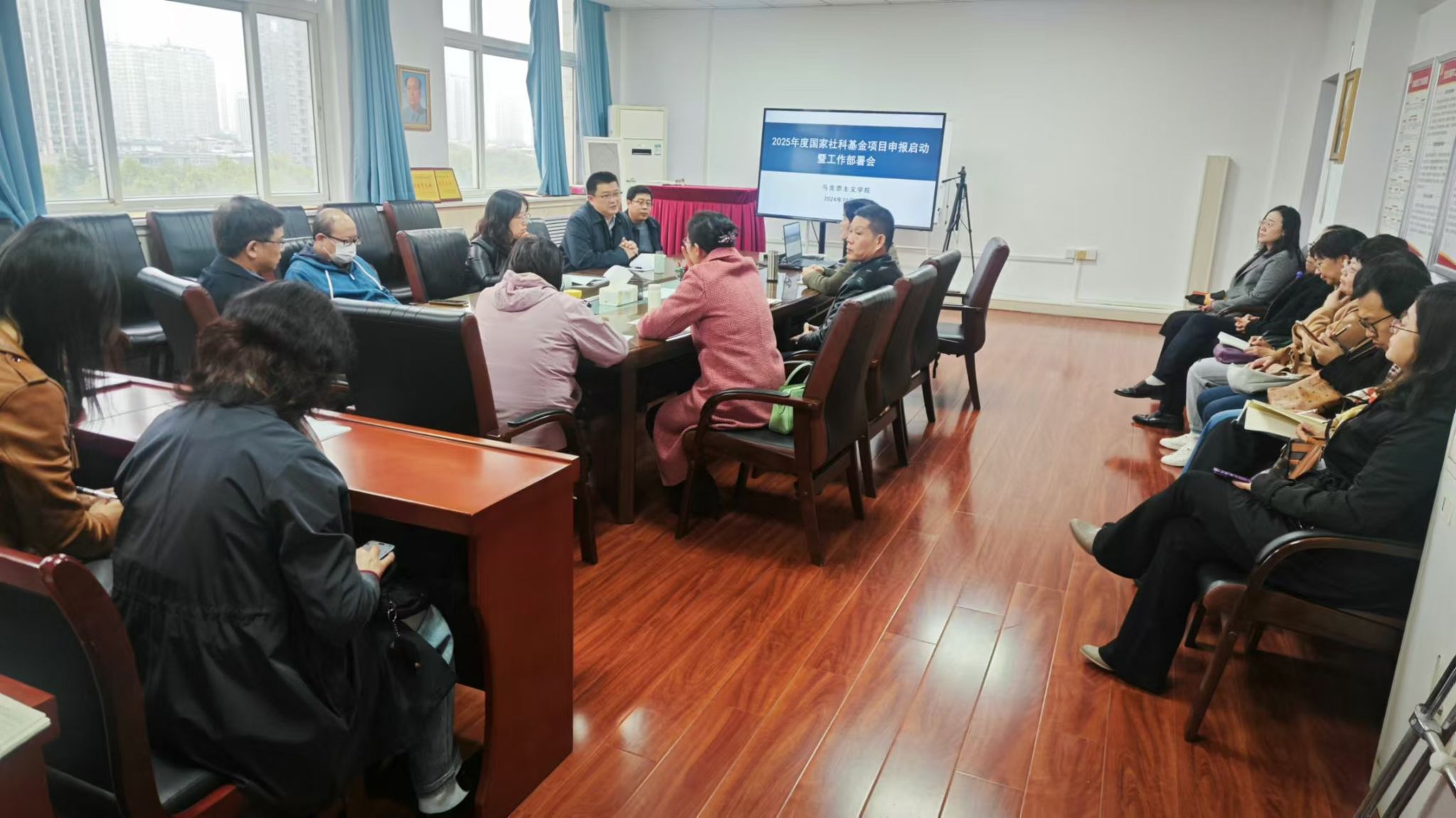 最后張海濤強(qiáng)調(diào),學(xué)院高度重視國(guó)家社科基金項(xiàng)目申報(bào),全院教師也要正確認(rèn)識(shí)此項(xiàng)工作既關(guān)乎學(xué)校事業(yè)發(fā)展又助益?zhèn)€人成長(zhǎng),學(xué)院將做好統(tǒng)籌協(xié)調(diào)和服務(wù)工作,在保證數(shù)量、提高質(zhì)量、突破存量的總體目標(biāo)下,組織院內(nèi)團(tuán)隊(duì)、邀請(qǐng)校外專(zhuān)家,細(xì)化工作流程做好項(xiàng)目選題、申報(bào)材料打磨等各個(gè)環(huán)節(jié),定期組織研討,以高度的責(zé)任感和使命感強(qiáng)化有組織科研,推動(dòng)學(xué)院科研工作向著更好的態(tài)勢(shì)發(fā)展,力爭(zhēng)在2025年國(guó)家基金項(xiàng)目工作中取得更好成績(jī),為進(jìn)一步提升我校的學(xué)術(shù)水平和學(xué)術(shù)競(jìng)爭(zhēng)力,為實(shí)現(xiàn)第三次黨代會(huì)提出的發(fā)展目標(biāo)貢獻(xiàn)“馬院力量”、跑出 “加速度”。
