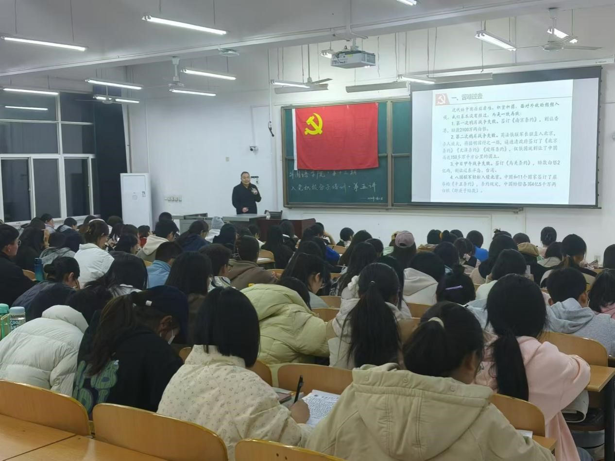 齊仲鋒以“從百年滄桑到大國崛起”為題,從苦難過去、艱難探索、根源剖析、輝煌成就、愿景對比五個方面,闡述了近代中國的發(fā)展歷程以及中華民族救亡圖存、救國救民的真理和路徑,重點講述了在中國共產(chǎn)黨的正確領導下,近代中國所發(fā)生的重要轉(zhuǎn)折以及取得的輝煌成就。強調(diào)了中國崛起的根本出路是中國特色社會主義道路,中國特色社會主義的本質(zhì)特征是中國共產(chǎn)黨的領導,正因中國共產(chǎn)黨的誕生,全國各族人民才能緊密團結(jié)在中國共產(chǎn)黨的領導下,形成強大的革命和建設洪流,推動中國迅速崛起并逐步走入世界政治舞臺的中央。他希望全體入黨積極分子能夠持續(xù)而深刻地學習黨的基本知識,牢固樹立共產(chǎn)主義遠大理想和中國特色社會主義堅定信念,增強“四個意識”,堅定“四個自信”,做到“兩個維護”,不斷在實現(xiàn)中國式現(xiàn)代化的征程上書寫青春華章。