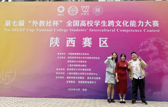 10月19日至20日,第七屆“外教社杯”全國高校學(xué)生跨文化能力大賽陜西賽區(qū)比賽于陜西師范大學(xué)圓滿落幕。經(jīng)過校級初賽及省級復(fù)賽,我校胡佳美、謝雨更、樊健濤三位同學(xué)榮獲三等獎(jiǎng)。