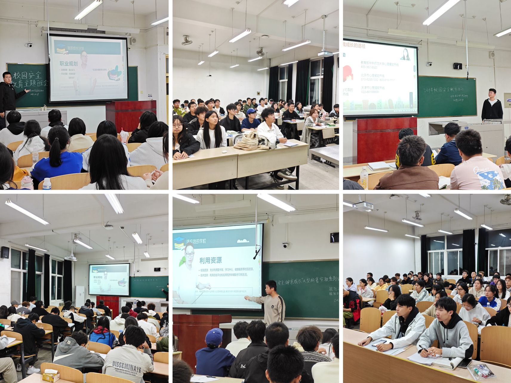 活動中,全體新生通過主題班會及晚自習(xí)形式學(xué)習(xí)了“校園安全·健康成長”大型科普宣教系列公益課堂,包含了《如何適應(yīng)校園新生活》《大學(xué)生心理健康維護(hù)》《大學(xué)生生涯規(guī)劃講座》《防溺水安全教育課》《關(guān)注校園安全 學(xué)習(xí)安全技能》《交通安全必修課》《防范于未燃》《守護(hù)錢袋子》等8個專題。視頻里專業(yè)人士的詳細(xì)講解,深入淺出地分析了校園安全事故發(fā)生的原因,并且傳授了實用的預(yù)防方法和應(yīng)對技巧,如消防器材的正確使用、交通規(guī)則的嚴(yán)格遵守以及在水邊的注意事項等。在觀看過程中,同學(xué)們?nèi)褙炞⒌囟⒅聊?,認(rèn)真學(xué)習(xí)了消防安全、交通安全、防溺水安全、防騙反詐等知識。