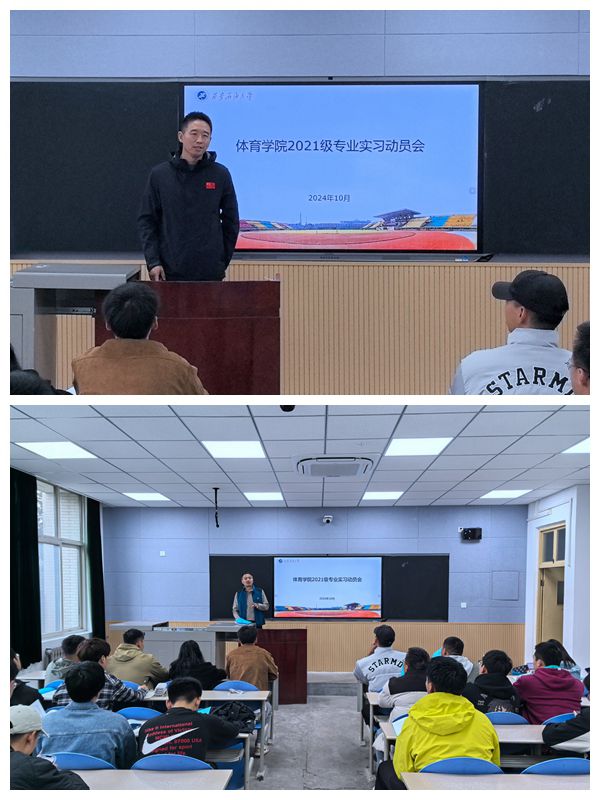 匠心引領(lǐng),逐夢啟航。10月29日下午,學(xué)院在鄠邑校區(qū)博覽樓A217教室召開了2021級專業(yè)實習(xí)動員會。會議伊始,胥山老師首先代表學(xué)院向即將踏上實習(xí)征程的同學(xué)們表示熱烈祝賀和殷切期望。他談到,實習(xí)是理論知識與實踐技能相結(jié)合的關(guān)鍵環(huán)節(jié),對于提升同學(xué)們的專業(yè)素養(yǎng)和綜合能力具有重要意義。隨后,李壽邦院長從思想教育的角度出發(fā),對同學(xué)們進行了深刻的實習(xí)動員。他指出,實習(xí)期間同學(xué)們的身份不僅是學(xué)生,更是體育精神的傳播者和體育事業(yè)的接班人,希望同學(xué)們能夠保持良好的品德修養(yǎng),展現(xiàn)體育人的風(fēng)采,與實習(xí)單位建立和諧的合作關(guān)系,為學(xué)院爭光,為體育事業(yè)添磚加瓦。隨后,李壽邦院長向?qū)W生們強調(diào)了安全的重要性,要求同學(xué)們時刻保持警惕,確保實習(xí)工作的順利進行。會議最后,輔導(dǎo)員張澤正向?qū)W生解讀了實習(xí)工作的具體安排和注意事項,并組織學(xué)生填寫了實習(xí)期間安全承諾書。