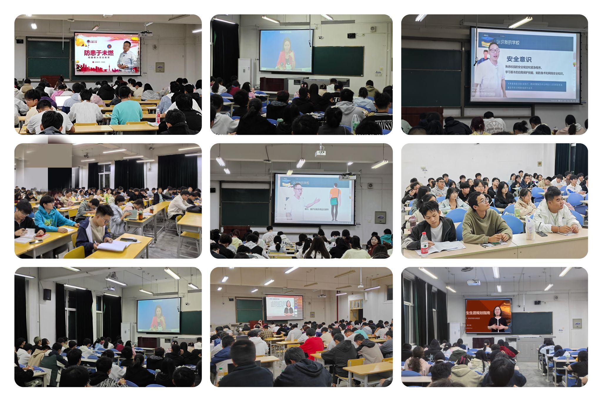 在安全教育活動中,2024級全體本科生利用晚自習(xí)時間集中觀看了《如何適應(yīng)校園新生活》《大學(xué)生心理健康維護》《大學(xué)生生涯規(guī)劃講座》《防溺水安全教育課》《關(guān)注校園安全 學(xué)習(xí)安全技能》《交通安全必修課》《防范于未燃》《守護錢袋子》等8個專題,共10節(jié)課的教育教學(xué)視頻,其他年級按要求自行觀看了其中7個專題,共9節(jié)課的教育教學(xué)視頻。
